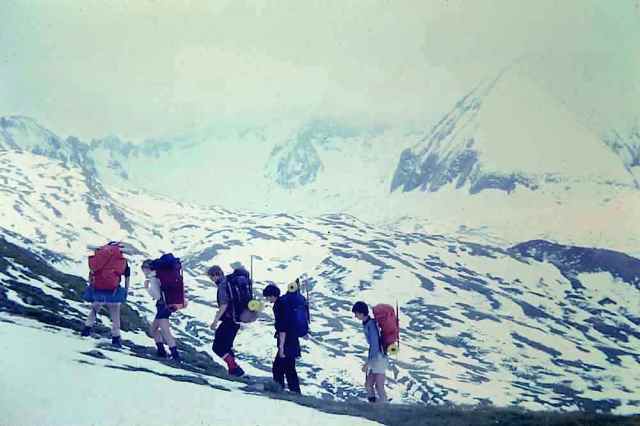 The Route The original plan was to cross the Hohen Tauern from east to west, passing close to Hochalmspitze, Ankogel, Sonnblick, Glockner and Venediger groups, and culminating in an ascent of the Venediger. Unfortunately poor weather caused drastic day-to-day revision of the route, and none of the planned ascents were made. However we did make ascents of Kasteneck (2824) and Roten Kogel (2762).