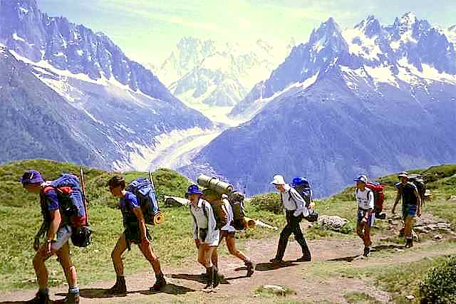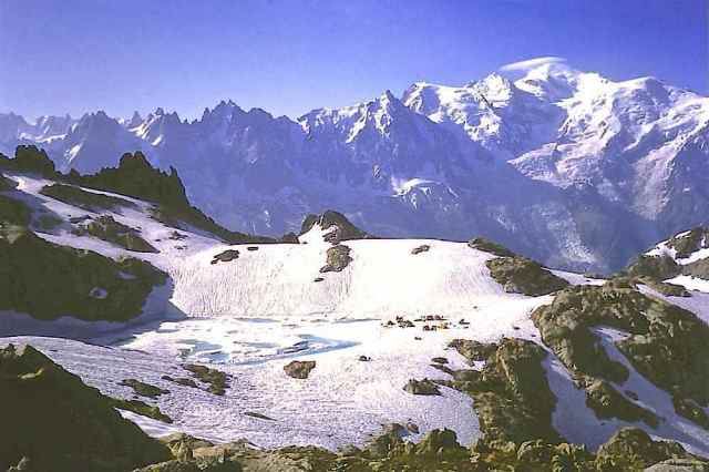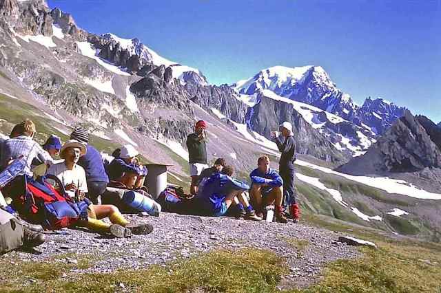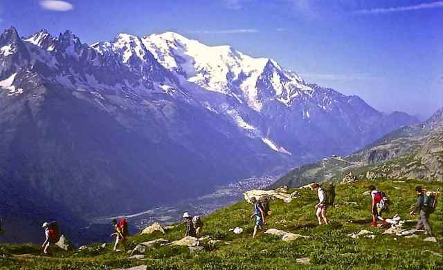 The Route The Tour du Mont Blanc is a route MGS trekkers have done frequently in the past (1935, 1950, 1954, 1959, and 1966), but although Trek was in the area of Mont Blanc in 1974 and 1983 it is now 22 years since Arthur Kahn led the last Trek round the full circuit. The basic TMB is rather easier than the standard of recent Treks and it doesn’t include any summits, so we planned to use all the higher official variants (and some of our own), and climb as many peaks as possible.