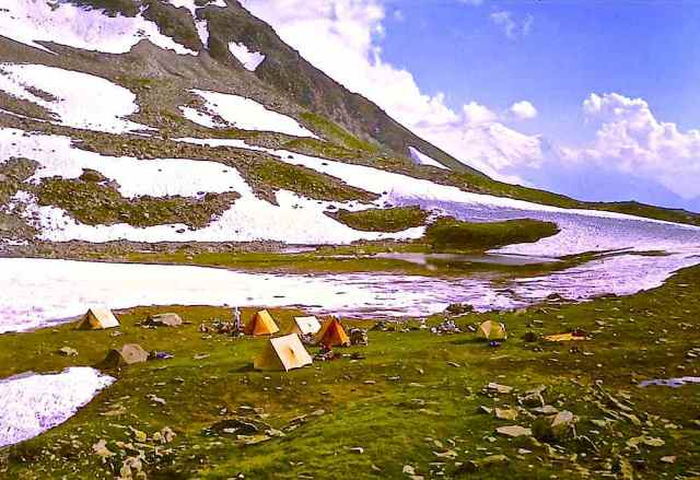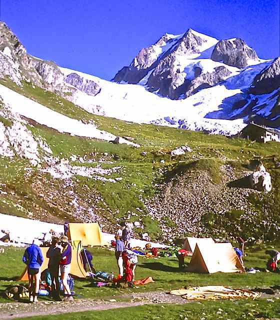 We did it in the unconventional direction of clockwise so we could make use of the Brévent and Val Veni cable cars, and so the first night’s camp could be at Lacs Noirs. The route divided into five sections between supply points at Montroc, Praz de Fort, Planpincieux and les Contamines, so at no stage were we carrying more than 3 day’s food, and consisted of 4 stages between valley camps at Sembrancher, Planpincieux, les Contamines and les Houches.