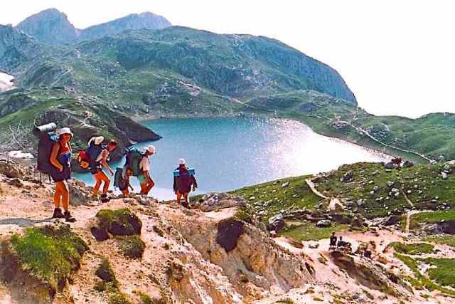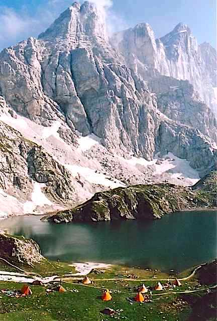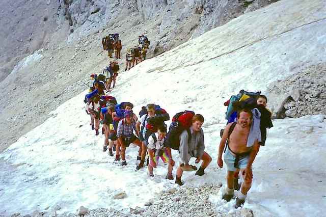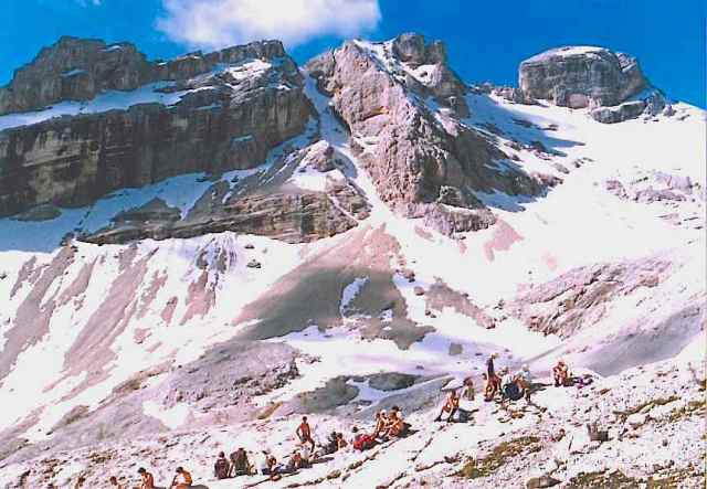 The Route was in two separate parts. The first part (10 days) was based on the Alta Via 1 from Lago di Braies to Agordo, and passed through the massifs of Sennes Alp, Fanes Alp, Tofana, Nuvolau, Croda da Lago, Pelmo, Civetta and Moiazza. Much of this was the same route as the 1980 Trek, the first MGS Trek based on the Alte Via 1 pioneered by Chris Little and Gerry Leversha. This year’s route had some variation in the breakdown into days, and some different mountain campsites and excursions.