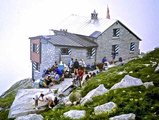 We then transferred by coach to Bivio to begin a high level circuit of Val Bregaglia, walking in from the north with mountain camps at Pass da Sett and Val da Cam on the north side of the valley, with an ascent of Piz Cam (2634 m) before descending to Vicosoprano. The final two-day section on the south side of Val Bregaglia was a crossing of the jagged Sciora ridge from Val Bondasca to Val da l’Albigna, staying at the Sciora hut overnight.