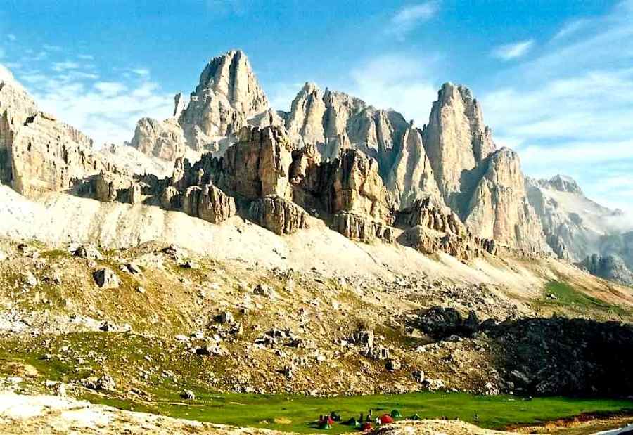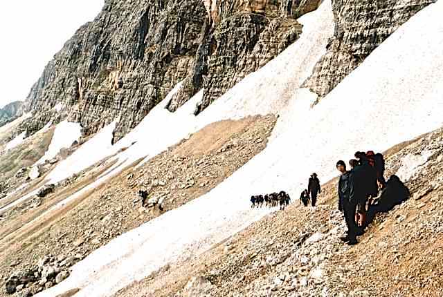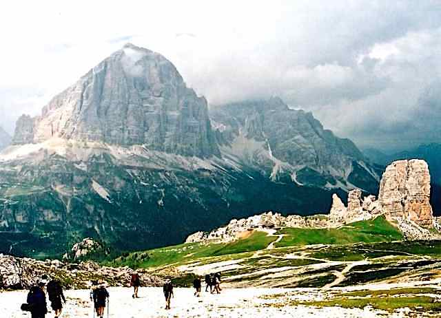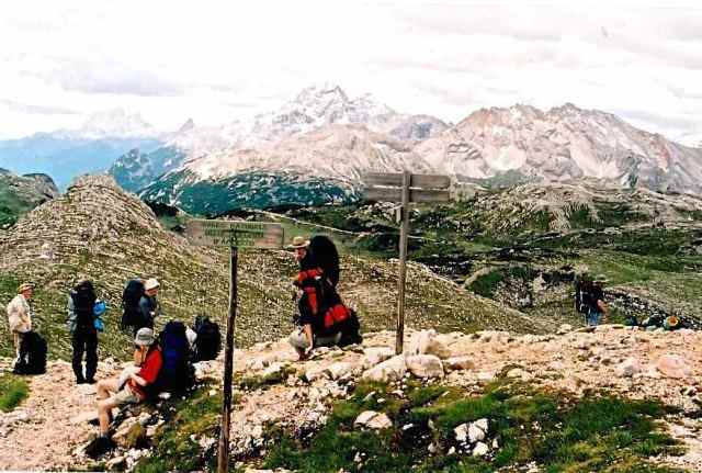 The Route was based on the Alta Via 1 from Lago di Braies to Agordo, and passed through the massifs of Sennes Alp, Fanes Alp, Tofana, Nuvolau, Croda da Lago, Pelmo, Civetta, Moiazza and Tamer. Much of this was the same route as the 1980 and 1989 Treks. We climbed the peaks of la Varella (3055 m) and Nuvolau (2575 m). The route divided into three sections between supply points: Lago di Braies > Rifugio Saré > Cortina > Forno di Zoldo.